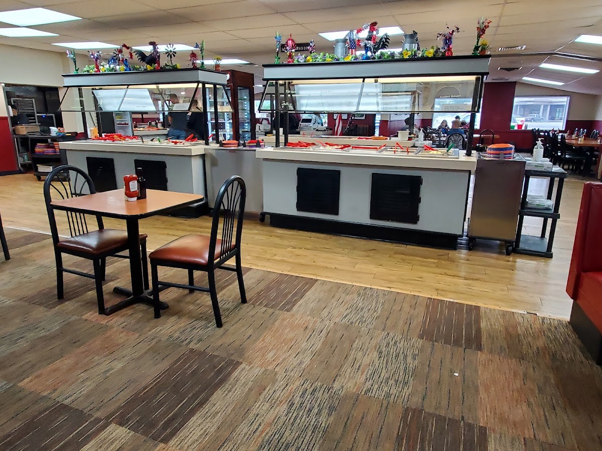 The food was barely 4 stars. The best things were the meatballs and the fish. The desserts were also very tasty. However, the steak on the buffet was terrible. The breaded chicken was dry, and the ham was almost pure fat. Mashed potatoes, veggies, and beans were all solid. The salad bar is always good and fresh. The highlight here is the broccoli. For dessert, the cheesecake and peanut butter pies were both really good. I have always loved cheap ice cream machine ice cream, which I've always called "milk ice." I love it. It went well with a moderately sweet chocolate cookie. The staff were all nice and atmosphere was fine. There is a lot of parking to an easily accessible entrance.