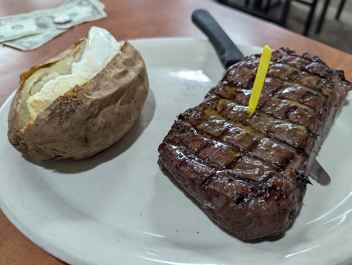 Welcome to Ponderosa, a delightful steakhouse located at 8801 Ohio River Rd in Wheelersburg, Ohio. This charming eatery combines a cozy atmosphere with a robust menu that caters to meat lovers and families alike. Renowned for its expertly grilled entrees, Ponderosa offers a mouthwatering selection of options that range from a succulent 1/2 lb Select Ribeye to a tender 1/2 lb Top Sirloin, each served with a choice of potato, a fresh garden salad, and a roll. Whether you are in the mood for rich flavors or lean cuts, their steaks are marbled and seasoned to perfection.