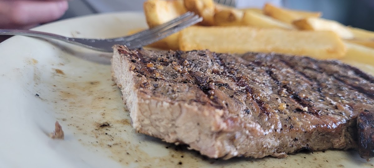 We were excited to see a Ponderosa pop up on our way back from a family reunion. It wasn't overly busy at the time we got there but picking up quite a bit bygthe time we left. Service was friendly.. I didn't get her name because I hit bathroom first. My hubs thinks Kate but his memory not the best.. She was a pleasantly chatty, friendly, eager to please blonde. I ordered Salmon and broccoli,my hubs got steak and fries. We each got a side salad. My salmon was perfect, hot and cooked just right. The broccoli was nearly cold.. The server got me a new side of steaming hot broccoli.. My hubs steak was supposed to be medium well... His steak was very done and very dry... The server took it away to get a properly cooked steak... As you can see in the pictures there was a definite difference. The replacement steak was great according to hubs. Despite the couple of food issues I would eat here again.. Issues resolved quickly and the service was the best! Our waitress looked out for us and made sure we got what we paid for. FYI: before tip it was about $50 for 2 entrées, 2 side salads and 2 drinks.