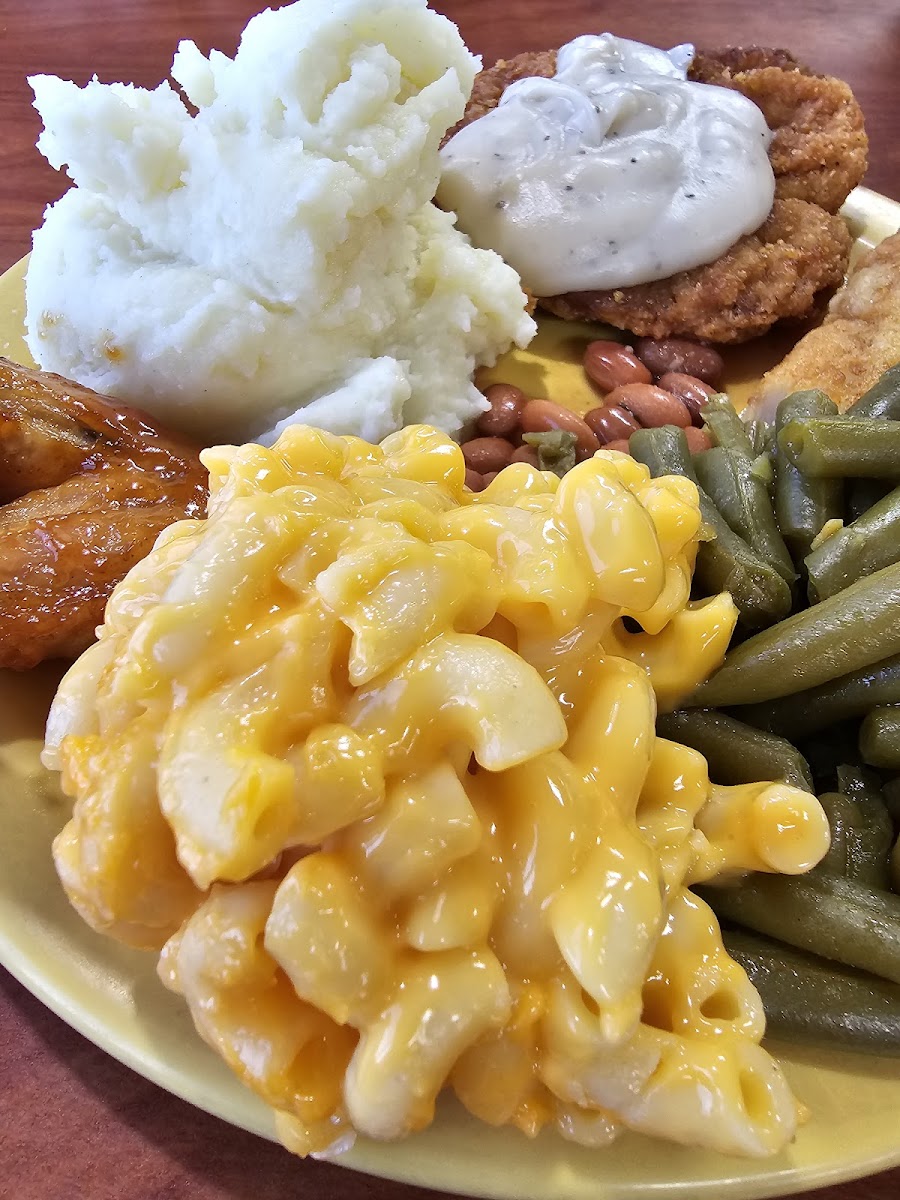I enjoyed all of the food that I tried. The meatloaf and loaded mashed potatoes were my favorites. The salad bar was very well stocked and everything was fresh. There was a great selection of food on the hot bar and in the dessert section. Our waitress was a sweetheart and was very attentive. The restaurant itself is very cozy and very nostalgic. My only complaint was the fact that there was something very sticky on the bathroom floor.